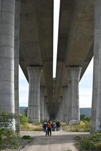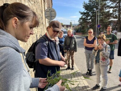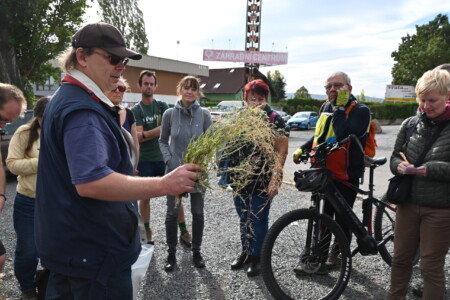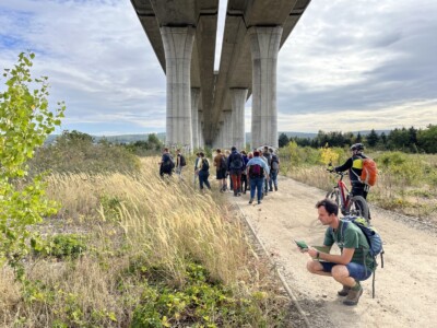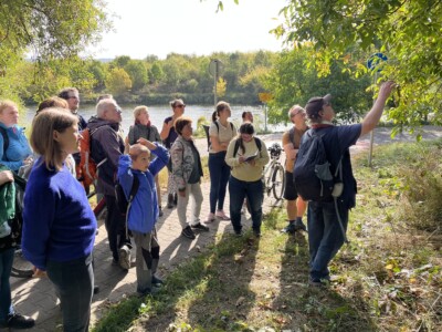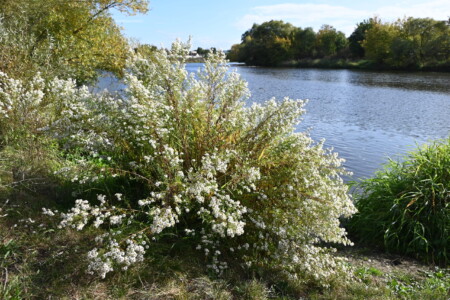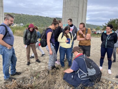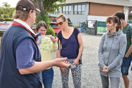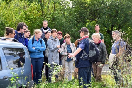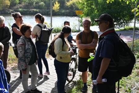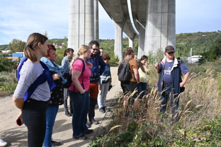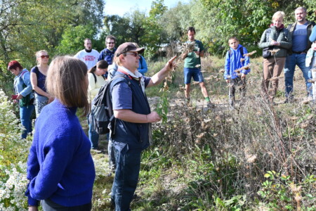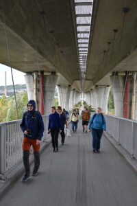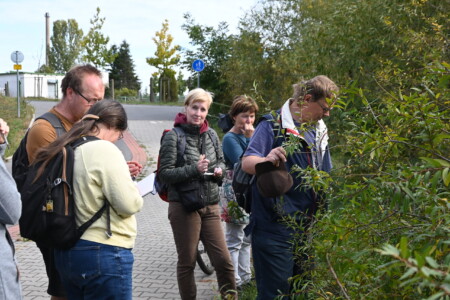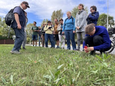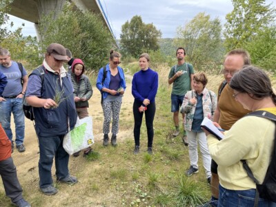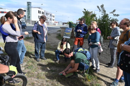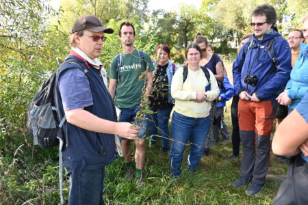 Během sobotní exkurze jsme navštívili člověkem značně změněná stanoviště v okolí Radotína a Lahovic, zejména pak místa pod Radotínským mostem, který byl uveden do provozu v roce 2010. Zde roste několik rostlin z dálnic, jako například ze středomoří zavlečený jitrocel vraní nožka (Plantago coronopus), ze střední Asie pocházející lebeda různosemenná (Atriplex micrantha), jihoafrický starček úzkolistý (Senecio inaequidens), americká slunečnice topinambur (Helianthus tuberosus). U Berounky byla k vidění rozkošná severoamerická tykvovitá rostlina štětinatec laločnatý (Echinocystis lobata), právě plodící, u Vltavy pak krásné klonální porosty křídlatky české (Reynoutria × bohemica), křížence dvou východoasijských druhů. Celkem jsme viděli asi stovku různých druhů rostlin zavlečených na naše území v různé době a z různých koutů světa. Některé rostliny jsou od dob prvních zemědělců, jiné jsou známé teprve v posledních letech, například rostliny šířící se v zahradnictvích: řeřišnice skrytá (Cardamine occulta), vousec přeslenitý (Polypogon viridis). K vidění byly také zplanělé pěstované druhy: fenykl obecný (Foeniculum vulgare), yzop (Hyssopus officinalis). Přímo pod mostem také v porostech plodící rakytník řešetlákový (Hipophae rhamnoides).